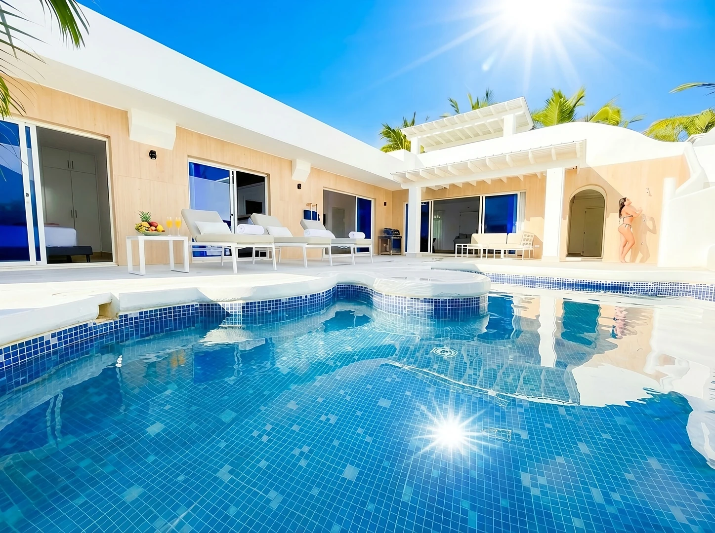 VILLA★AZUL has it all – a modern Villa just steps away from the stunning private Beach of Playa Palmera, located in our exclusive and gated Resort. Enjoy a private Pool, 3 mod...